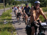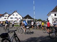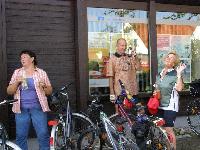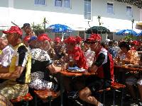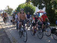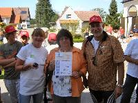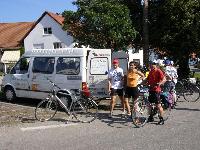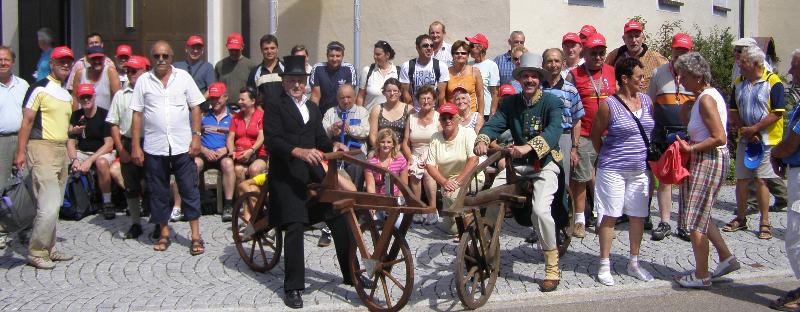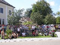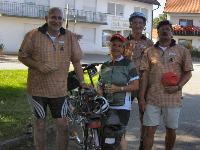 Mit etwas Verspätung machten sich die radbegeisterten Wallfahrer an „Maria Himmelfahrt“ von Fischach aus auf den Weg nach Maria Baumgärtle. Über Wollmetshofen, Langenneufnach und Walkertshofen erreichten die Radler Mittelneufnach. Dort wurde die erste kurze Pause eingelegt. Fischachs 3. Bürgermeisterin Marianne Koos, begleitete mit ihrem Mann, im Begleitfahrzeug den Radlertross. Das Angebot, der im Begleitfahrzeug mit geführten Getränke, wurde von vielen Teilnehmern angenommen. Nach dem alle den langen Anstieg nach Markt Wald hinauf gemeistert hatten, wurden sie mit der zweiten Pausen belohnt. Die dritte Pausen wurde nach Pfaffenhausen eingelegt, bevor es galt den letzten langen anstrengenden Anstieg nach Maria Baumgärtle hinauf anzugehen. Die Radlerfreunden, der Staudenradlergruppe, Tchibo, Reinhold und Norbert begleiteten ich eine ältere Dame den letzten Teil des Anstieges hinauf zum Ziel. Dort wurden wir von der aufspielenden Blaskapelle aus Unterkammlach empfangen. Im schattigen Biergarten des Landgasthauses Maucher konnten sich alle von den Strapazen erholen und stärken. Durch die roten Mützen, welche die Fischacher Radpilger trugen, hatte man immer einen Überblick über die Gruppe. Nach dem Gottesdienst, der von dem Unterallgäuer Bäuerinnenchor umrahmt wurde, segnete Pater Josef Gehrer die Räder der über tausend Wallfahrer. Anschließend vergab Landrat Hans-Joachim Weirather Preise für die jüngsten und ältesten Teilnehmer. Den Preis für die größte Gruppe mit den meisten gefahrenen Kilometern gewann die Fischacher Radlergruppe erneut klar. Die 3. Bürgermeisterin Fischachs, Marianne Koos, die erstmals die Fischacher Delegation führte, der sich immer viele Radler aus den umliegenden Orten anschließen, strahlte als sie die Auszeichnung entgegennahm. Sie bedankte sich bei allen, die durch ihre Teilnahme dazu beigetragen haben erneut das Siegerteam zu stellen. Bericht aus der Mindelheimer Zeitung: |