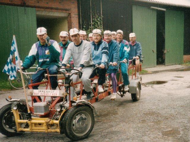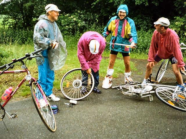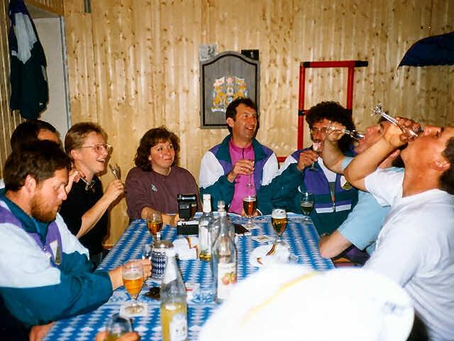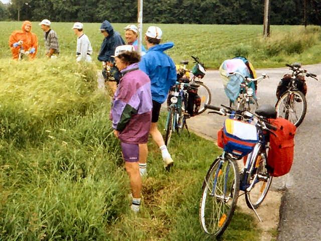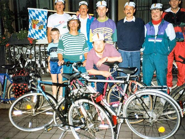 bereits bei der Ankunft gehisst hatten. Alle waren sich einig, trotz der diesjährigen Regen-Wind-Tour im nächsten Jahr wieder mitzuradeln. Staudenradler-Tour 1991 |
