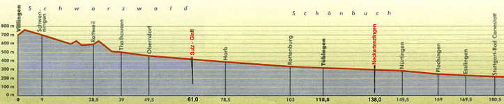die "bergigen" Etappen von Rottweil nach Tübingen.