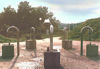 Hier steht ein Trinkbrunnen, der mit seinen hiesigen Mineralwasserquellen für die allgemeine Verköstigung bereitsteht. In den