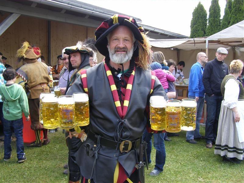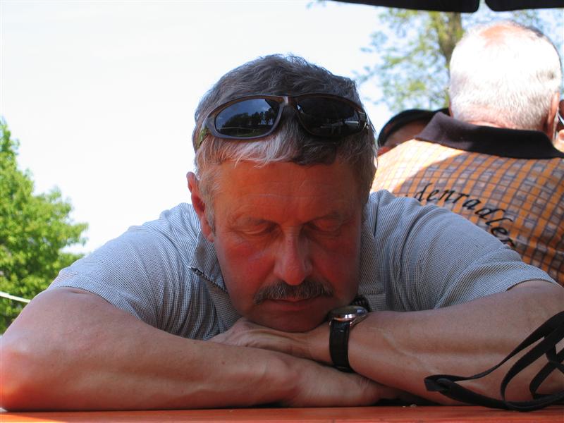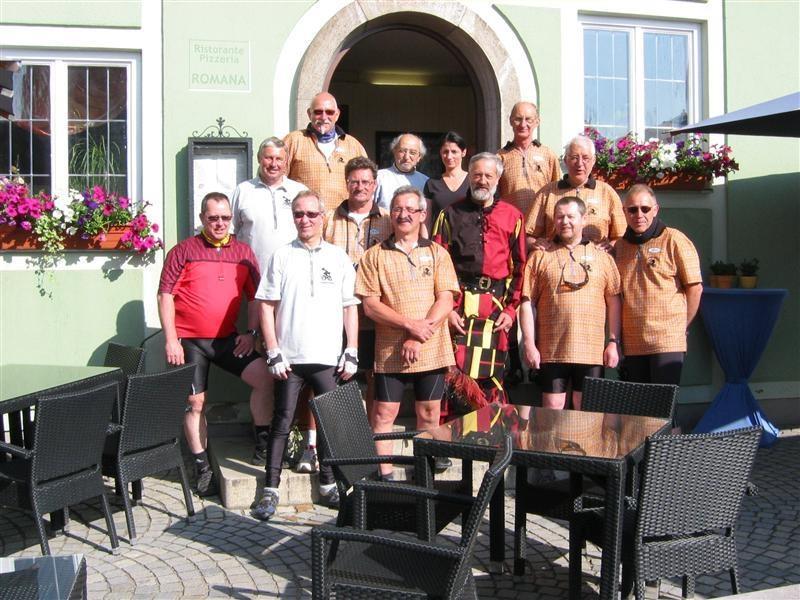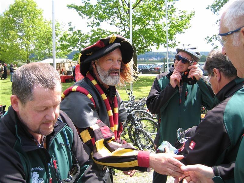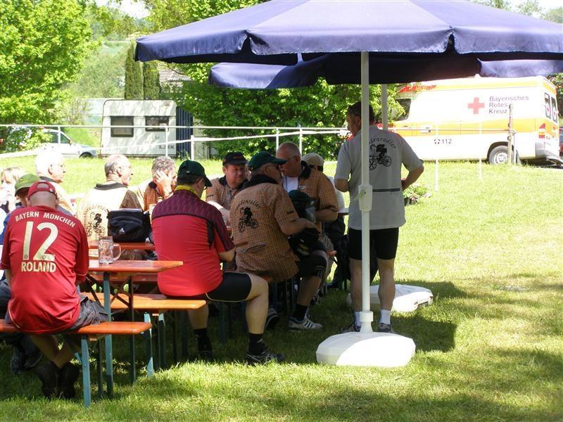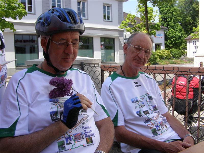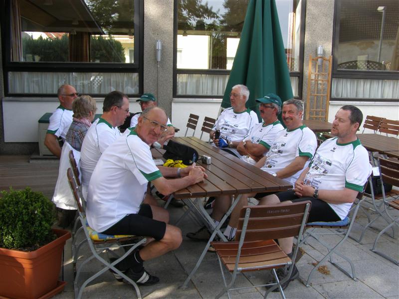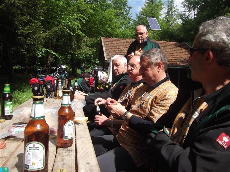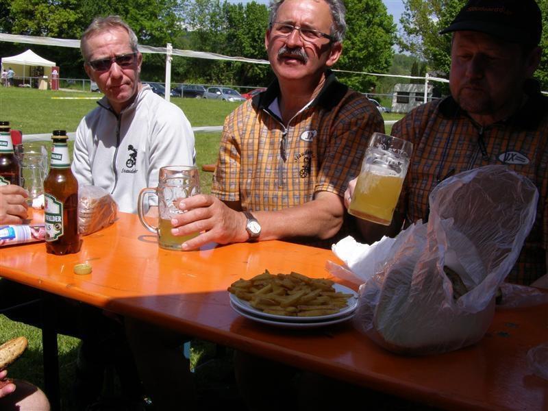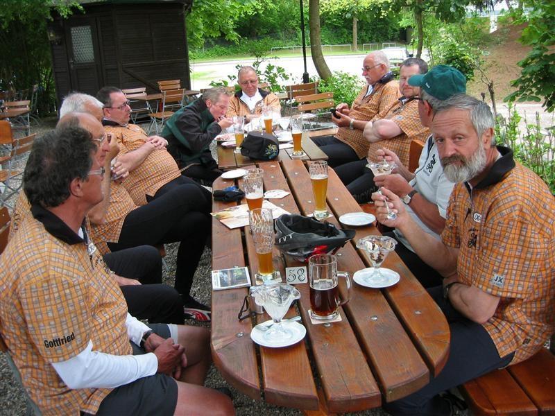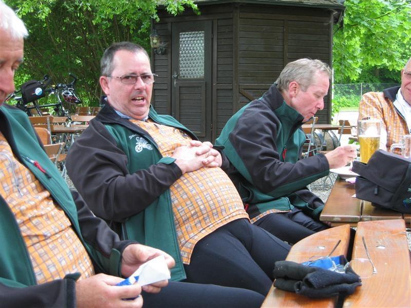 Donnerstag 17.05.2012: 8°° Uhr Start Cafe Straßer mit Privatauto Richtung Bad Wörishofen. 9°° Uhr Abfahrt zur Kammel-Tour von der Eissporthalle Bad Wörishofen. Dorthin wurden die Fahrräder mit dem Pferdehänger von Verena und mit einem umgebauten Hänger von dem Freund (Fahrlehrer) von Tonis Tochter Monika und mit uns allen angekarrt. Steil Bergauf ging's zur Kammel-Quelle durch Wiesen und Wälder. Mitten im Wald, bei einem Waldarbeiter Haus, gab's die erste Brotzeit in einer sonnendurchfluteten Lichtung. Dann ging's ab zur Festwiese der Helfensteiner zu Mindelheim. Eingetroffen um 13.15 Uhr empfängt uns der Ritter -Weber- Schorsch mit einer Runde Bier. Mit noch 12 Rittern und dem Trinkspruch " Kaiser + Gott" geht's um 14.30 Uhr ab in Richtung Niederaunau. Bei -Thea- Kosten wir die verschiedenen Biersorten von Kuchlbauer, Augustiner, Erdinger, Franziskaner bis hin zur heimischen Münzbrauerei. Ankunft um 18°° Uhr in Krumbach Gasthof Hotel Munding. Webers Schorsch trifft ein und übernimmt den weiteren Schriftverkehr.