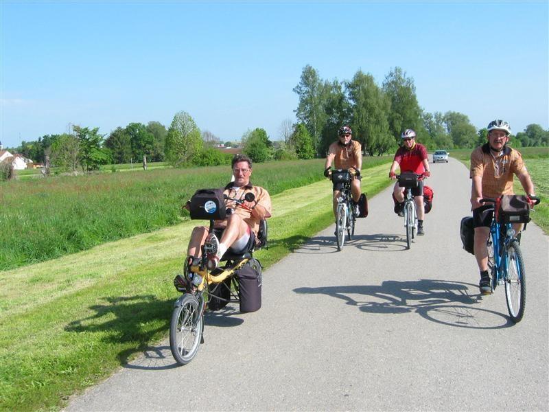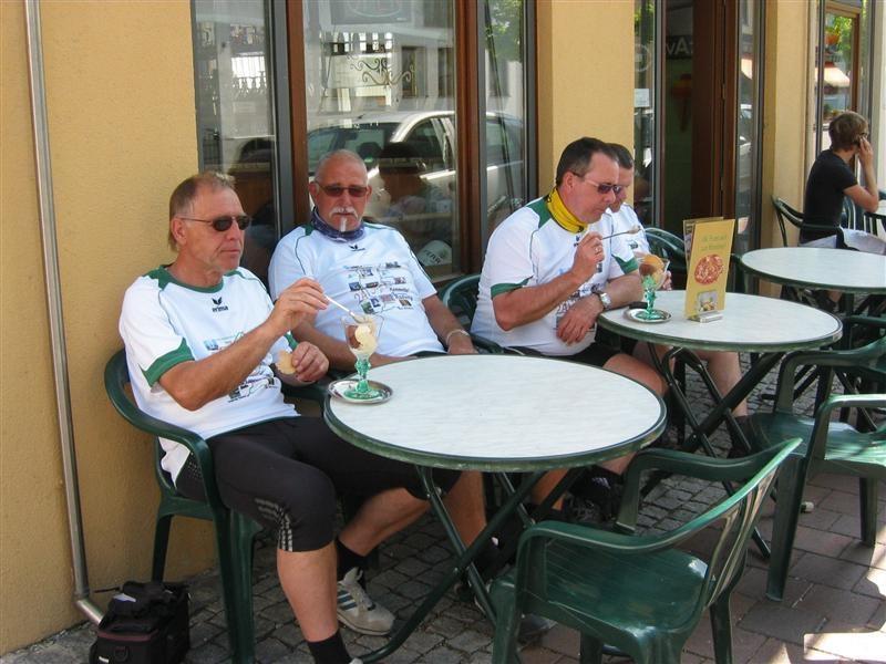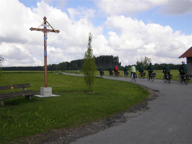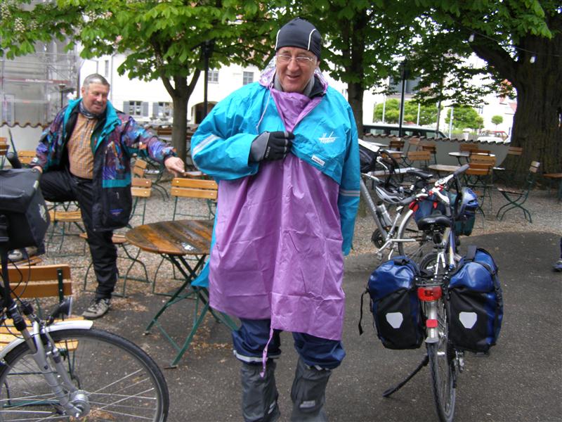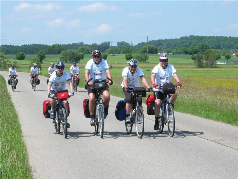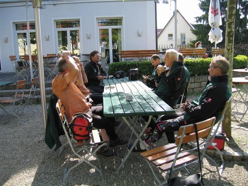 Freitag 18.05.2012: Wetter in der Frühe stark bewölkt. Vor Start Kühl, leichter Nieselregen. Wir ziehen alle Regenkleidung an. Verspätete Abfahrt nach Foto mit den Wirtsleut. Nach ca. 1/2 Std. Wetterbesserung. Regenkleidung kann wieder verstaut werden. Fahrt über Neuburg/Kammel, Langenhaslach nach Edelstetten. Besichtigung der Pfarrkirche "St. Johannes Baptist und Johannes Evangelist". Weiterfahrt Richtung Offingen. Mittagspause in Pizzeria "Am Silbersee". Nach ca. 1 Std. Weiterfahrt Richtung Holzheim. Wetter gut. Etwas frisch. Ca. 2 km vor Wertingen nochmals Einkehr in Biergarten.