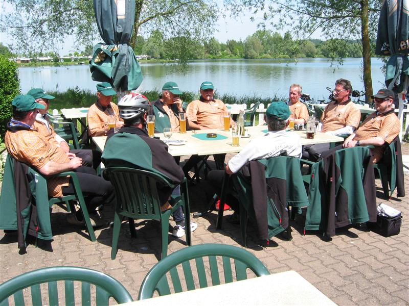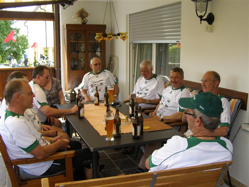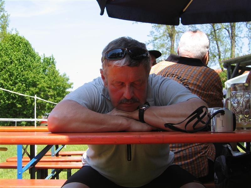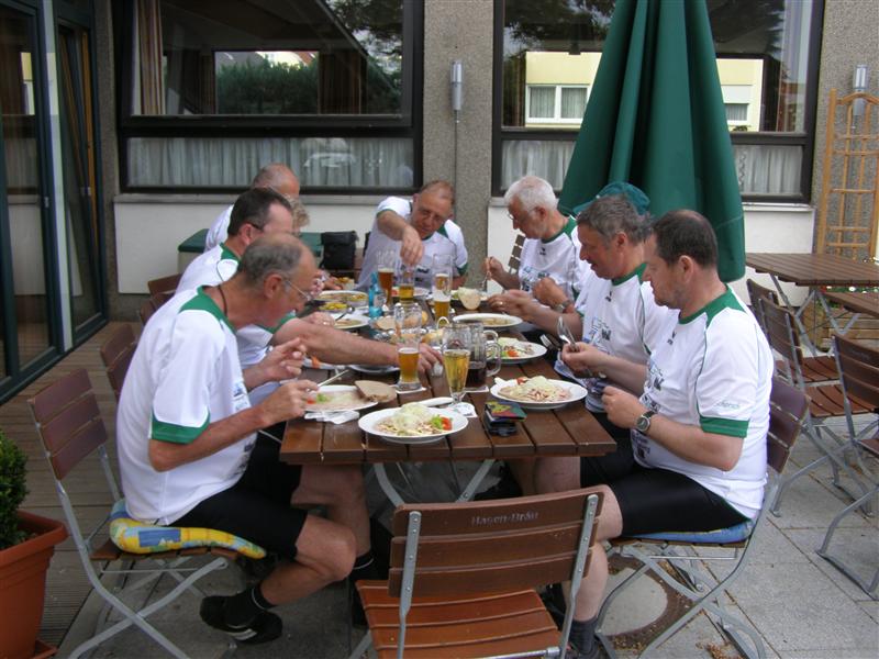 vom Turnierplatz kommt ein ES (Vierbeiner) mit gebogenem Schwanz vorbei. In der Traube angekommen - nun geöffnet- gibt's das letzte Weizen und bay. Wurstsalat und Lumpensalat. Das alles mit viel, viel Zwiebel oben auf. So geht's dann ohne Gegenwind aber mit viel Wind von Hinten um 18.35 Uhr nach Margertshausen.