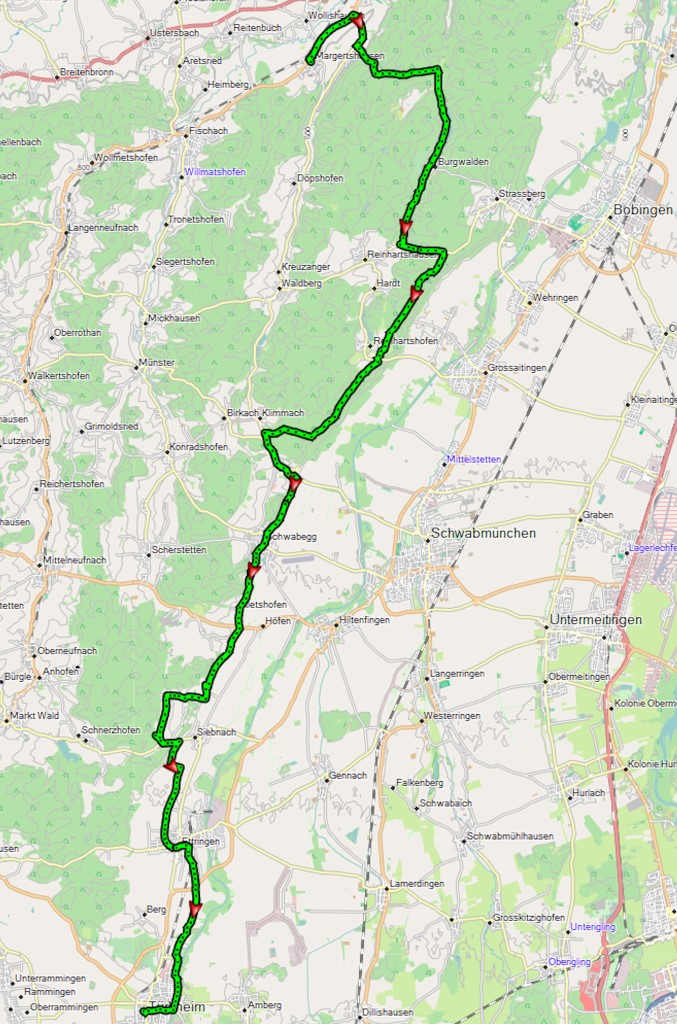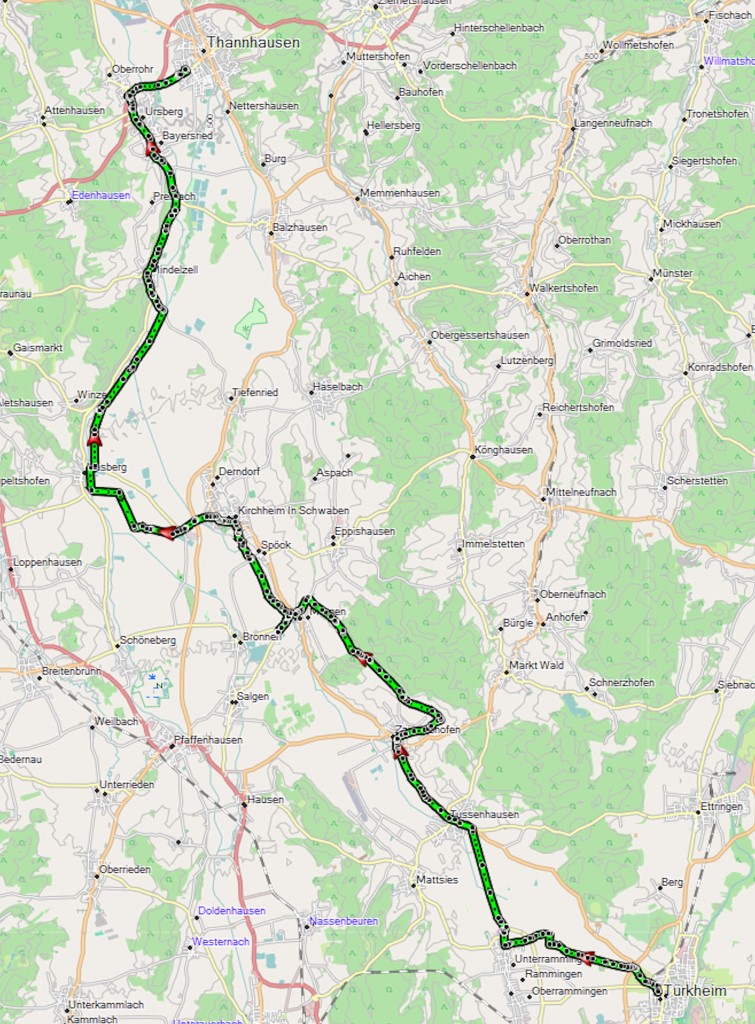 Türkheim über Markt Wald, Grimoldsried, Kirchheim und Ursberg nach Thannhausen (ca.