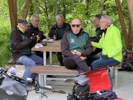 Weißwurstfrühstück. Von unserer bisherigen Gruppe waren nur sechs Radler dabei