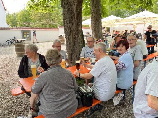 Wörleschwang, dort legten wir im Biergarten des Kulturstadels eine Pause ein.