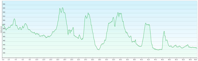 Durchschnitt in Fahrt: 16,4 km/h Max.: 513 m