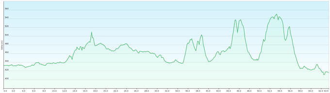 Durchschnitt in Fahrt: 14,5 km/h Max.: 560 m