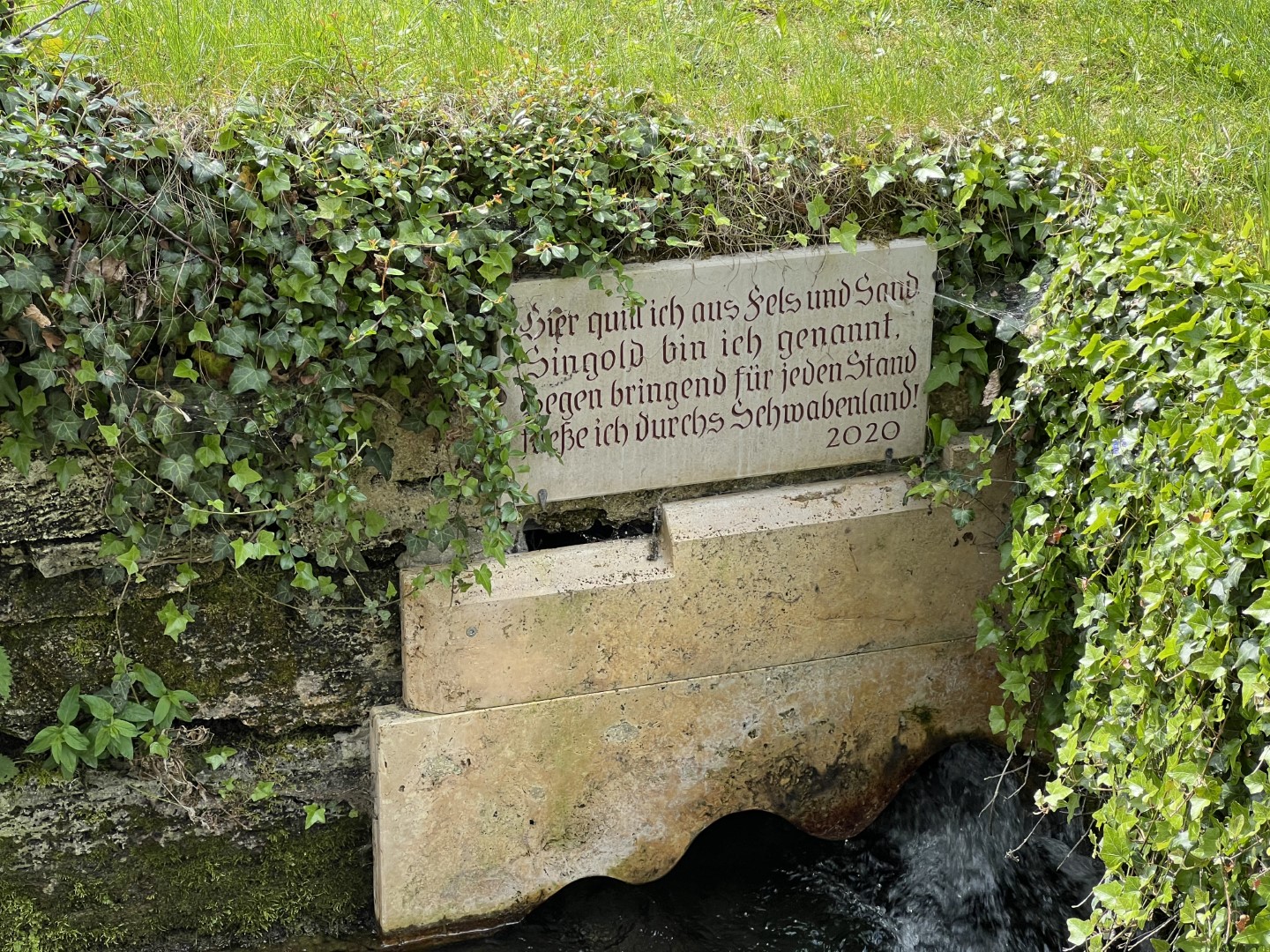 Rudi die Quelle der Singold, die mitten im Ort entspringt. Dort wechselte er
